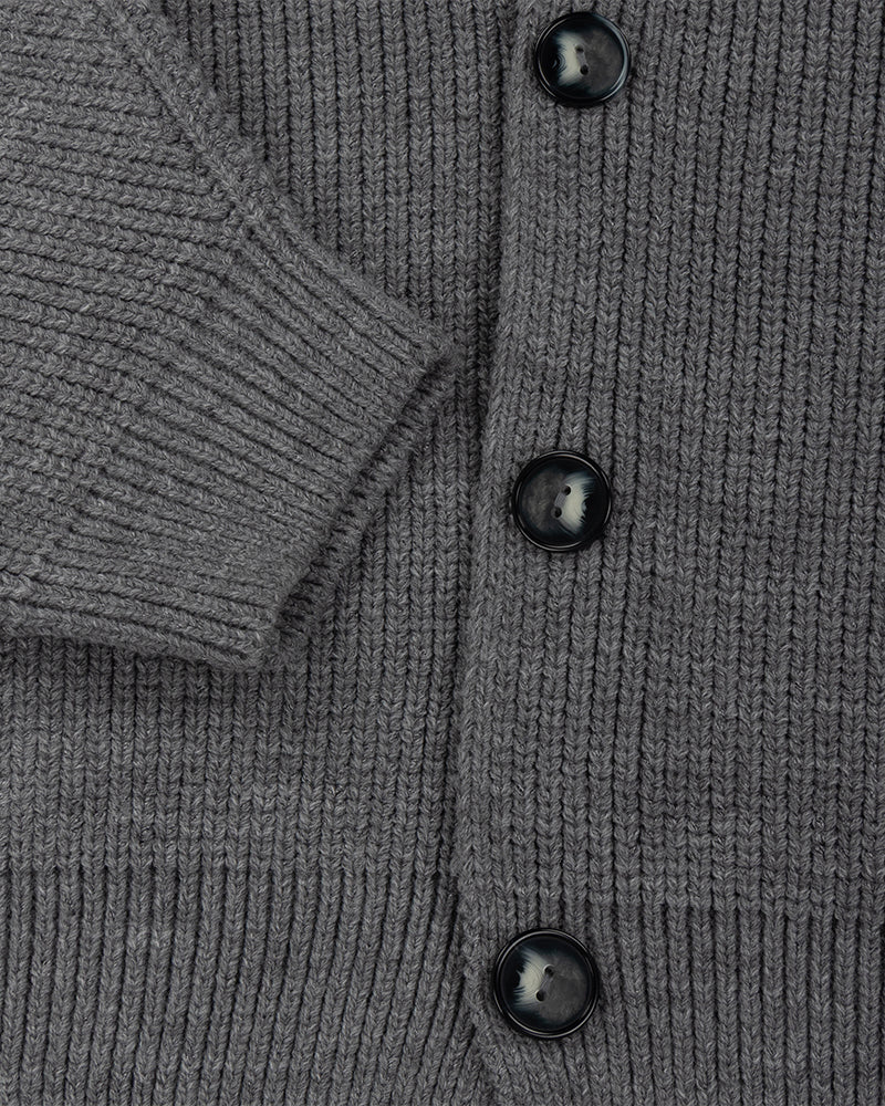 Finally, it's knitwear season... Drop 1 for Autumn Winter 2025 comes in the form of the Corazon Hooded Cardigan in grey. This chunky, rugged knit is the perfect garment to see you through colder climes.