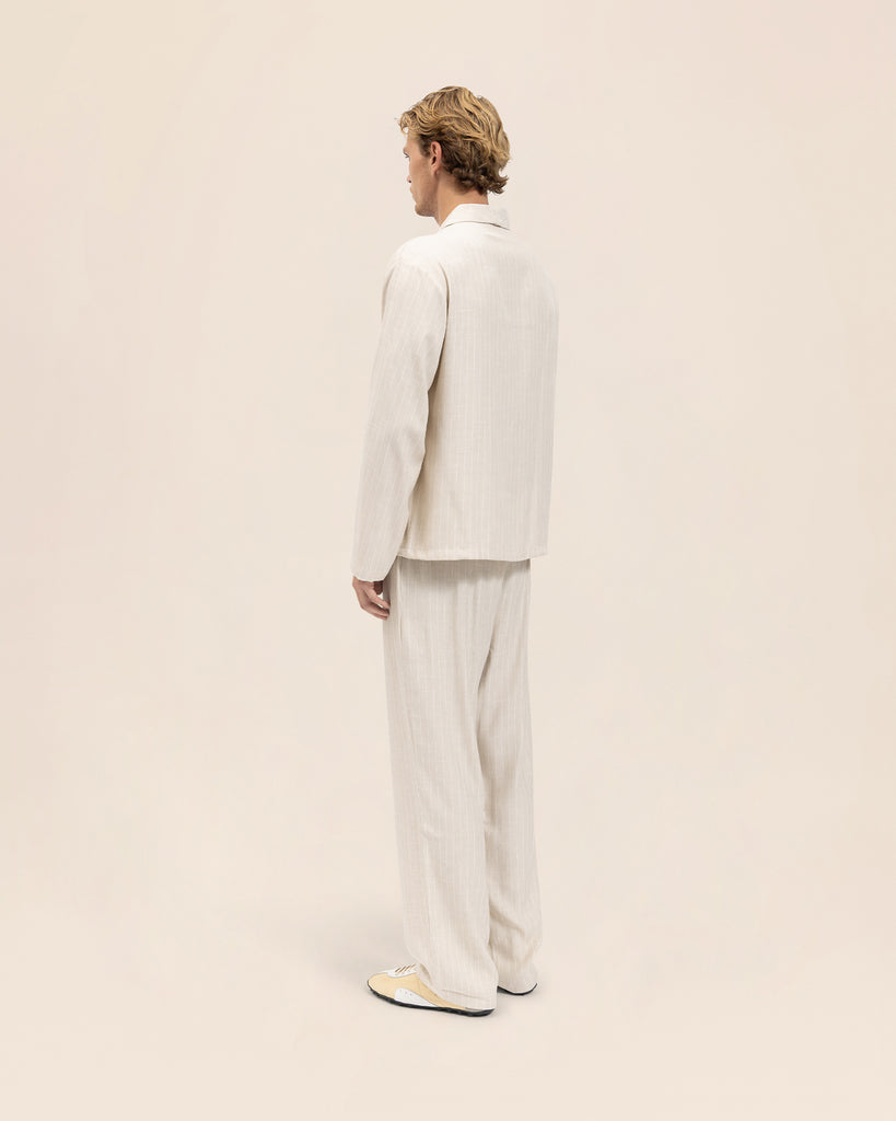 Our ever evolving soft tailoring collection gets an elevated revamp for 2025 in the form of the Arta Shawl Double Breasted Jacket in Cream Stripe. This elevated blazer is the perfect transitional day-to-night garment, with a silhouette perfect for solo wear or as a layering piece. Designed and produced locally in England, this product proudly boasts our efforts in minimising our carbon footprint as much as we can.