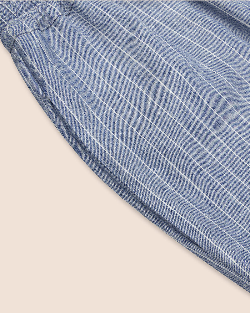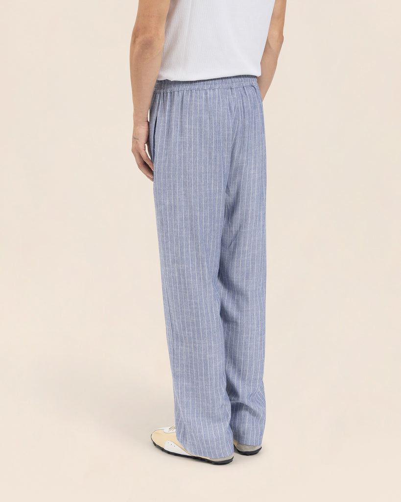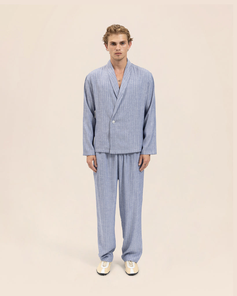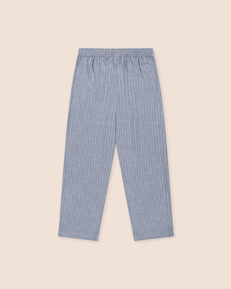 Our ever evolving soft tailoring collection gets an elevated revamp for 2025 in the form of the Arta Trouser in Blue Stripe. This elevated pant is the perfect transitional day-to-night garment, with a silhouette perfect for solo wear or as a layering piece. Designed and produced locally in England, this product proudly boasts our efforts in minimising our carbon footprint as much as we can.