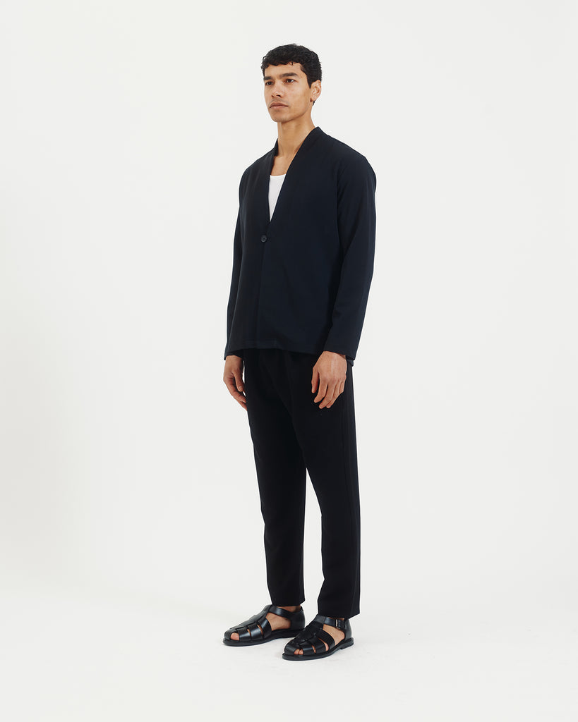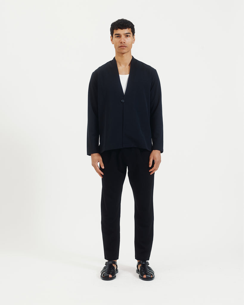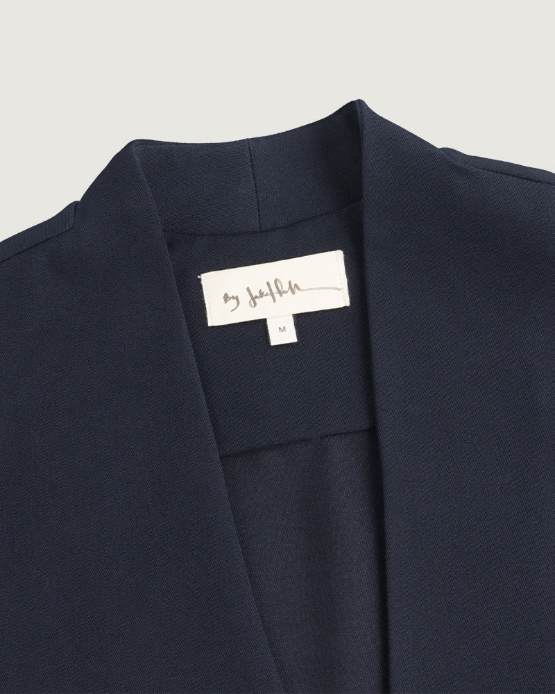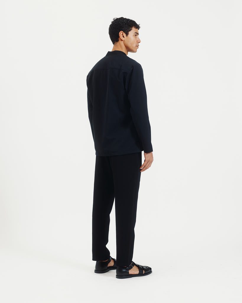 The Cana Shirt in Navy. This elevated shirt is the perfect transitional day-to-night style, with a silhouette perfect for solo wear or as a layering piece. Designed and produced locally in England, this product proudly boasts our efforts in minimising our carbon footprint as much as we can.