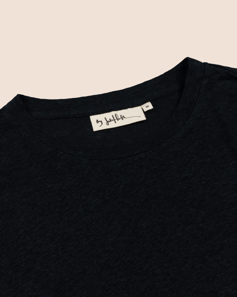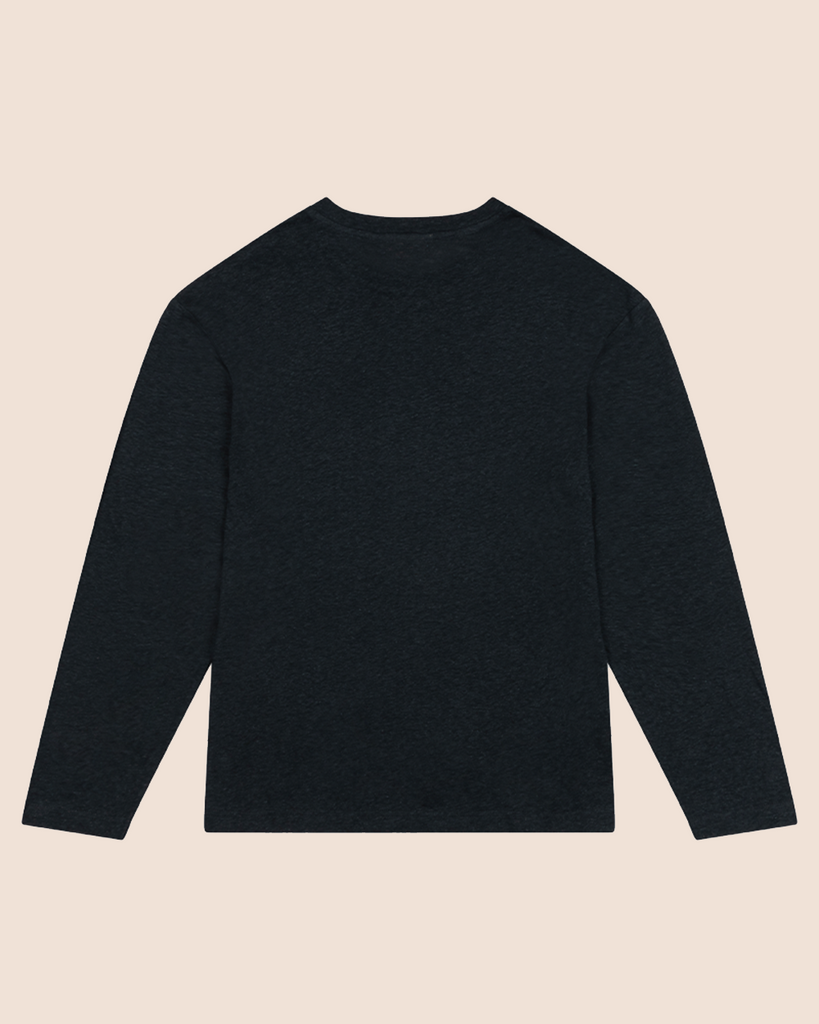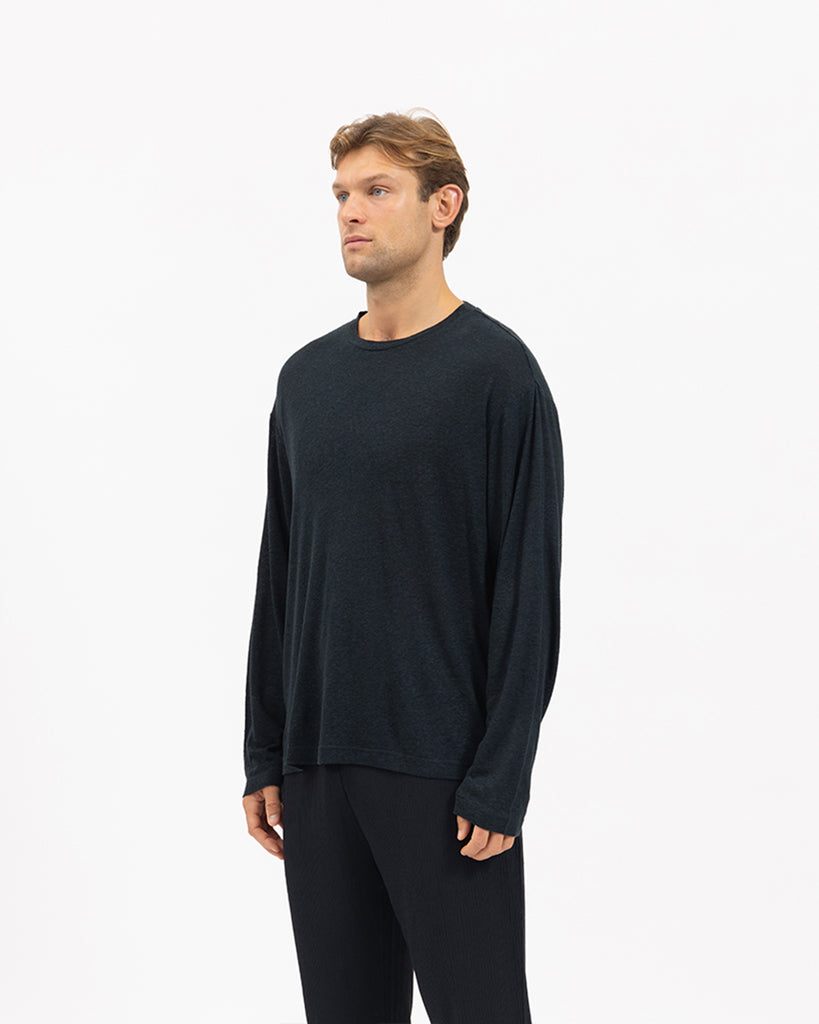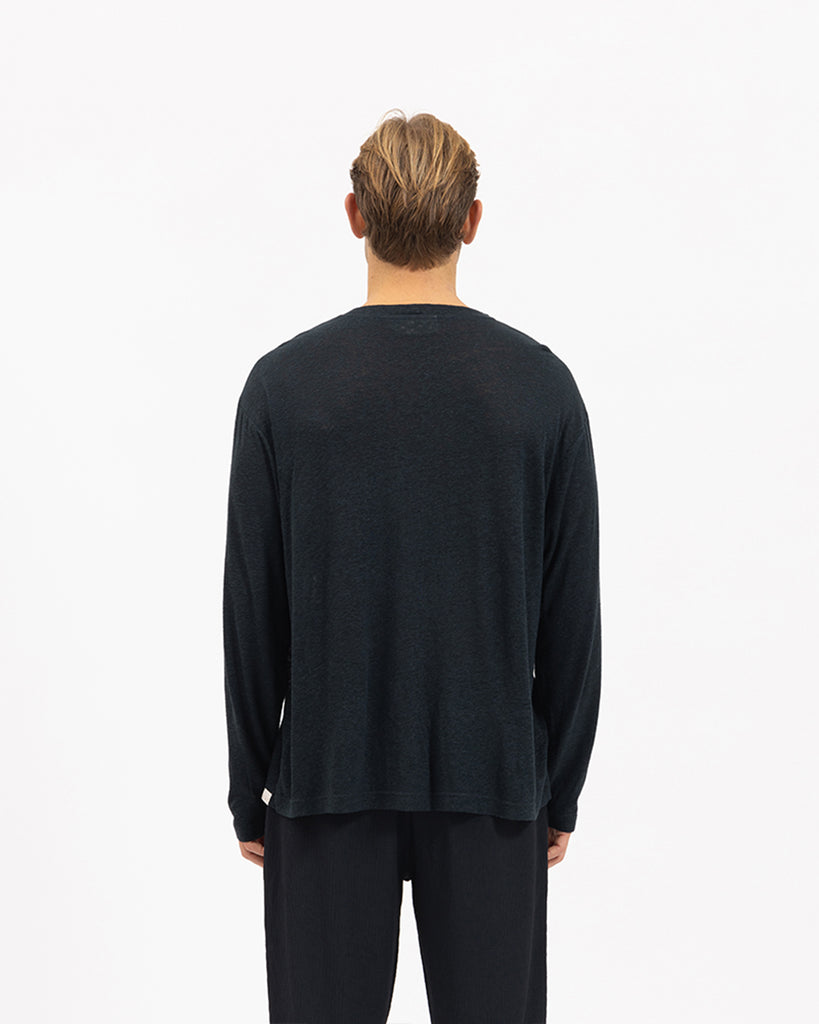 The Serralta Long Sleeve Tee in Black. Constructed from light-weight linen blend fabric in relaxed and effortless silhouette, these elevated wardrobe staples are perfect for everyday wearing.