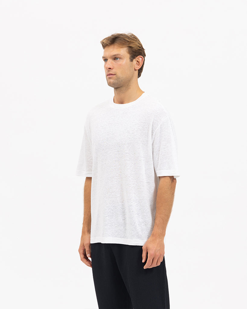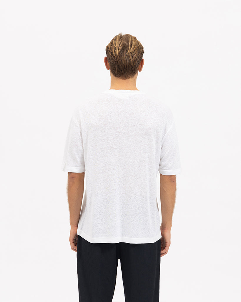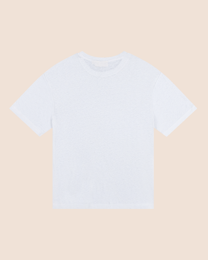 The Serralta Short Sleeve Tee in White. Constructed from light-weight linen blend fabric in relaxed and effortless silhouette, these elevated wardrobe staples are perfect for everyday wearing.