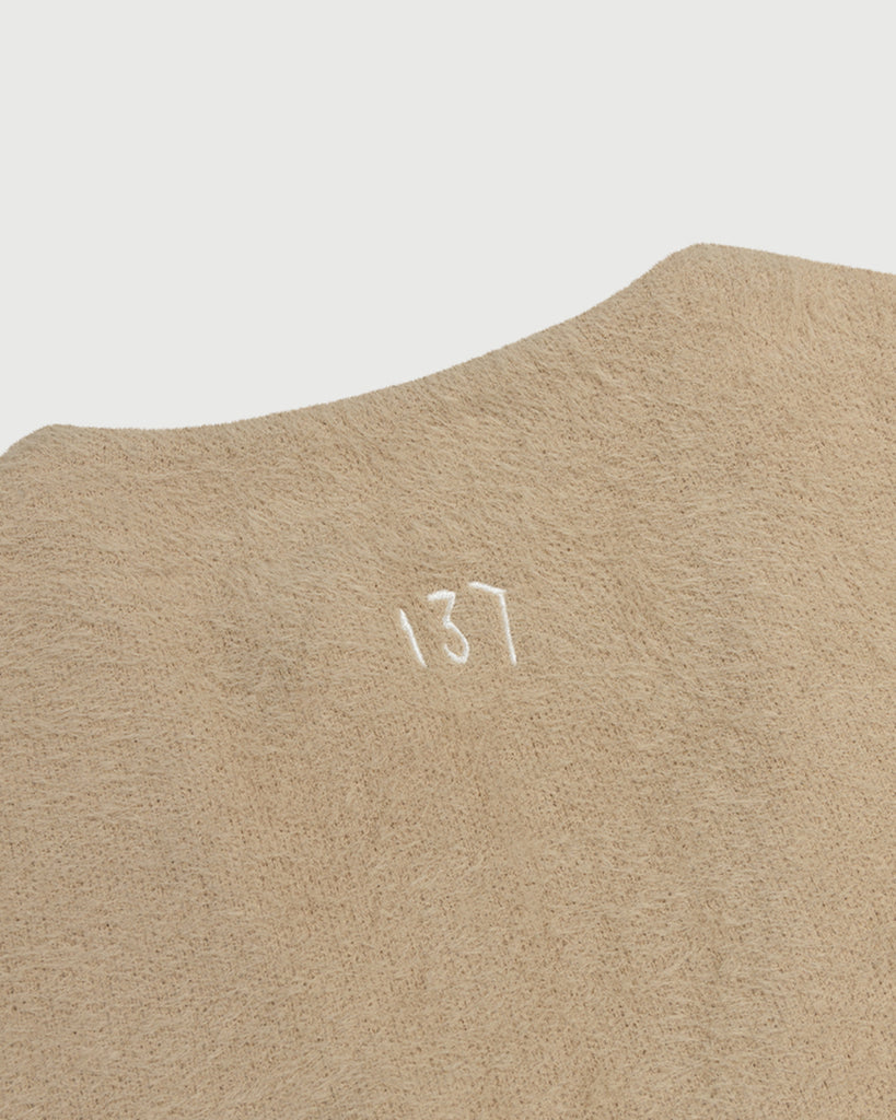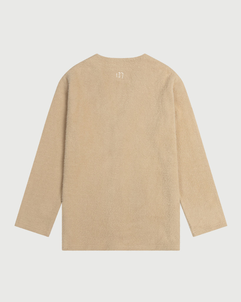 Introducing the Calobra Cardigan in Sand. Constructed from a Supersoft brushback fabrication and an incredible handle, this garment provides a comfortable feel and relaxed silhouette whilst showcasing an evolution in fabric development. A showstopper on its own or worn with the plain Calobra pant and Serralta tee.