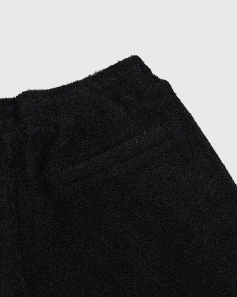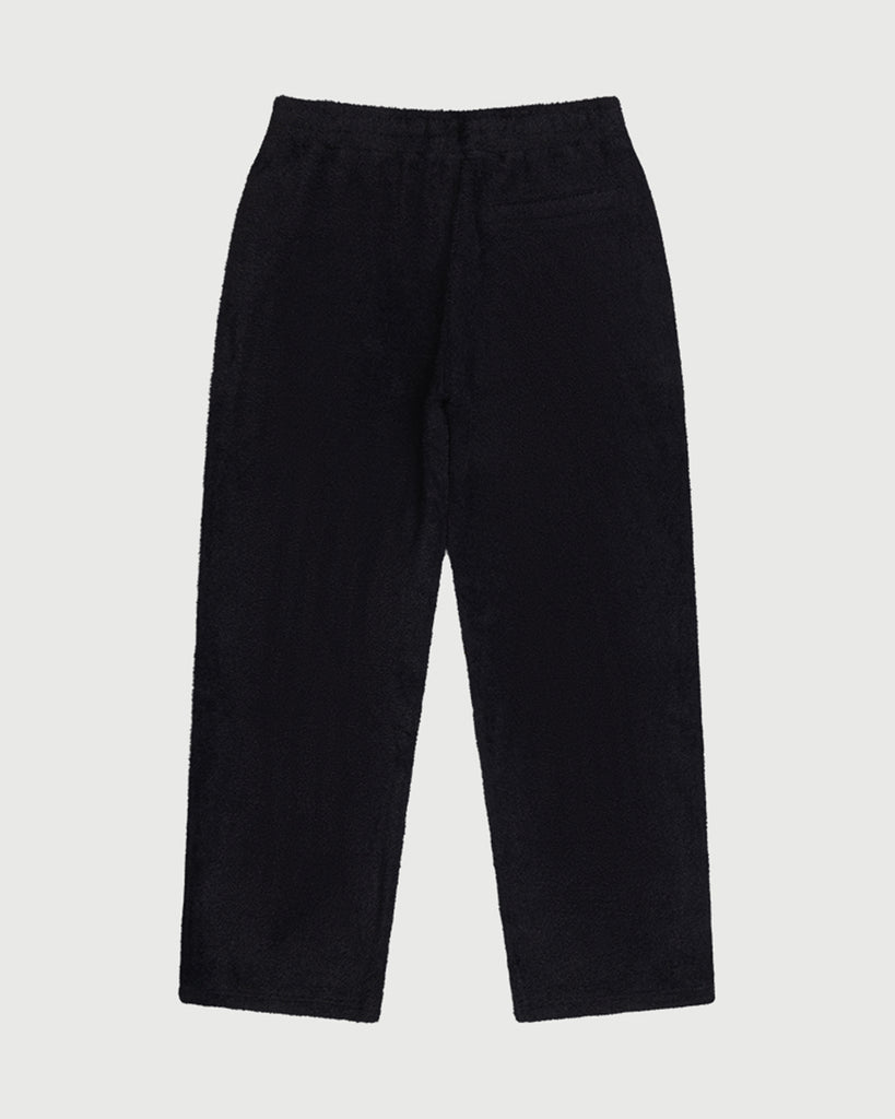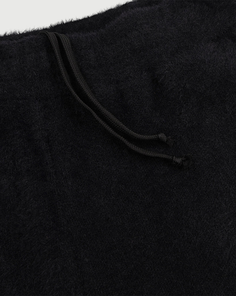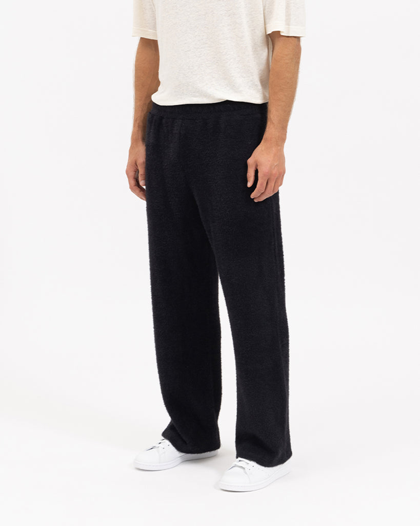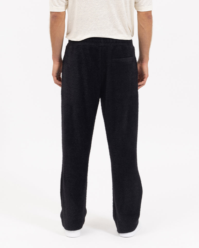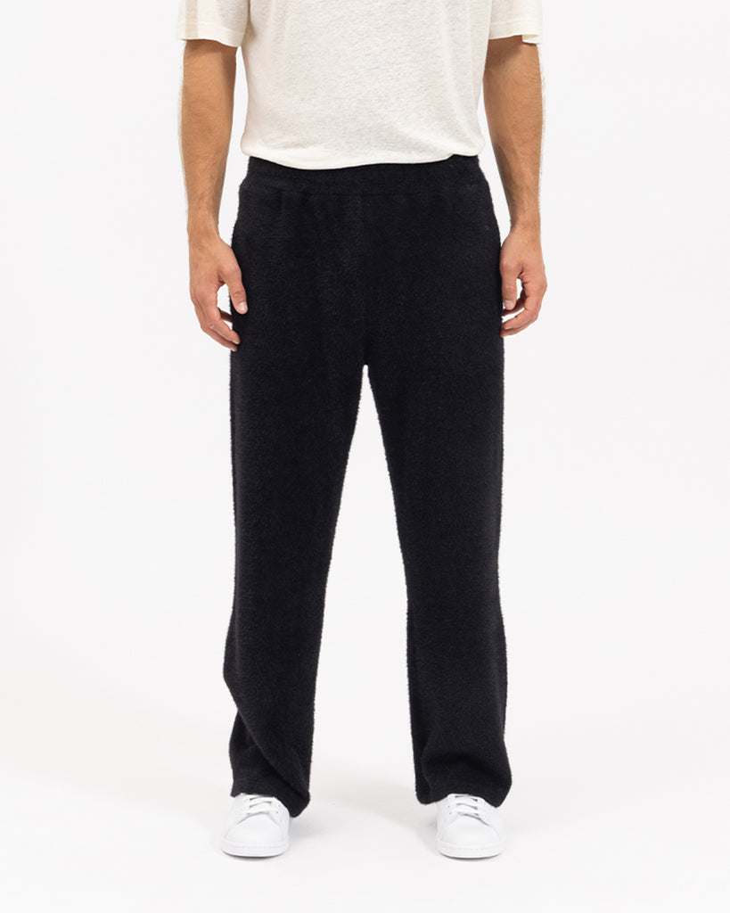 Introducing the Calobra Trouser in Black. Constructed from a Supersoft brushback fabrication and an incredible handle, this garment provides a comfortable feel and relaxed silhouette whilst showcasing an evolution in fabric development. A showstopper on its own or worn with the plain Calobra Hoodie and Serralta tee.