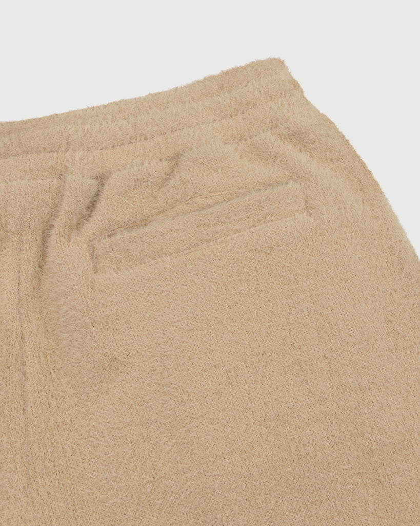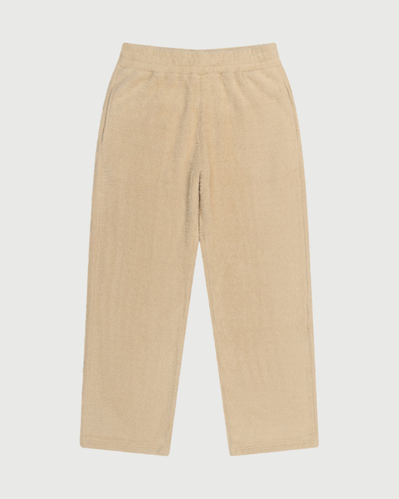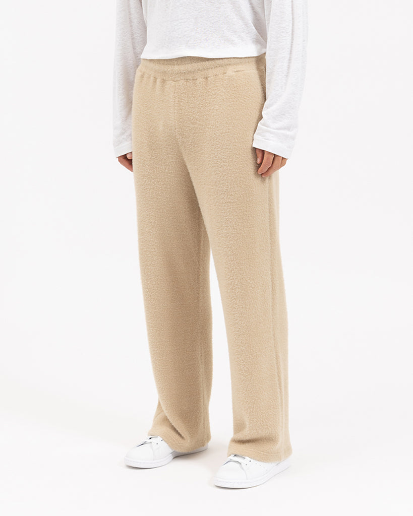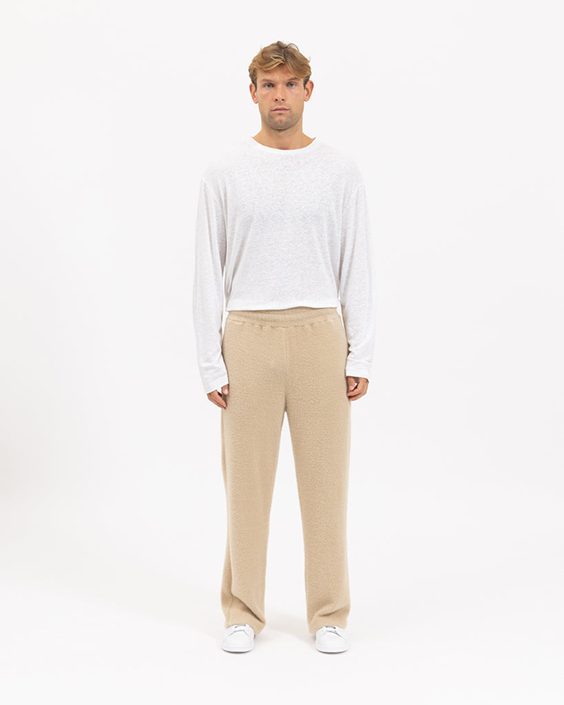 Introducing the Calobra Trouser in Sand. Constructed from a Supersoft brushback fabrication and an incredible handle, this garment provides a comfortable feel and relaxed silhouette whilst showcasing an evolution in fabric development. A showstopper on its own or worn with the plain Calobra Hoodie and Serralta tee.