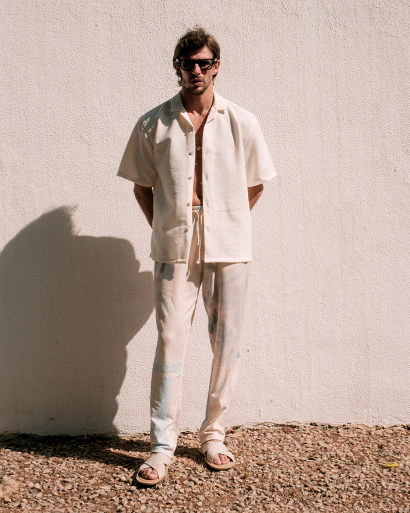 A key piece for high Summer 2024, the Galileu Print Trouser in Blue base.