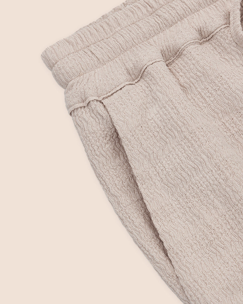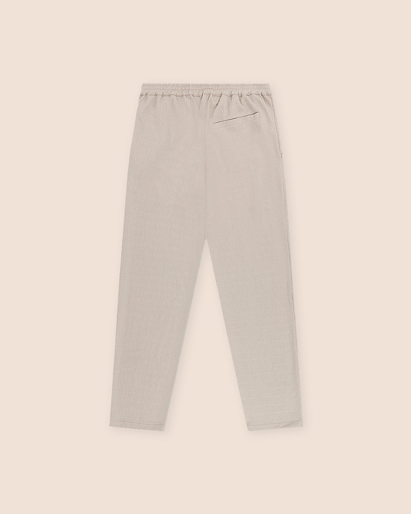 The Mirador Trouser in Latte. Constructed from light-weight textured style fabric in a relaxed and effortless silhouette, these trousers are the only wardrobe staple you need to accompany you throughout the seasons.