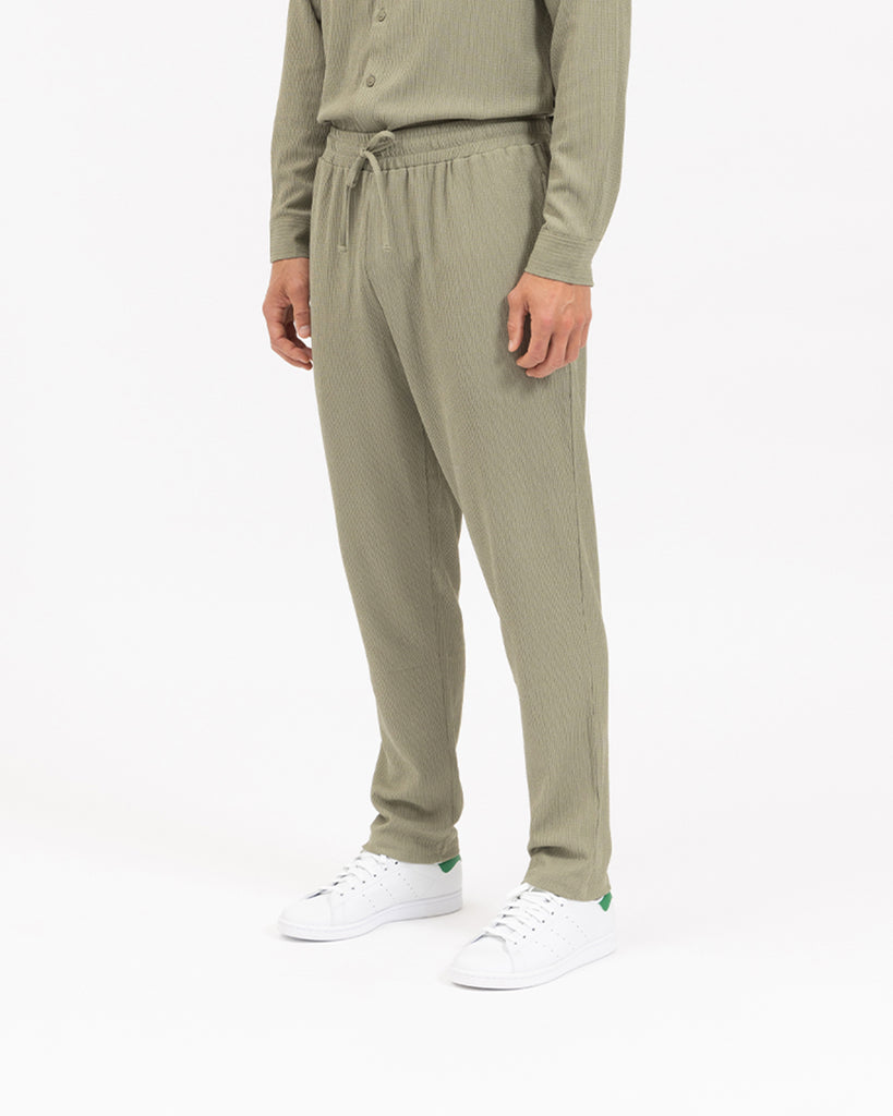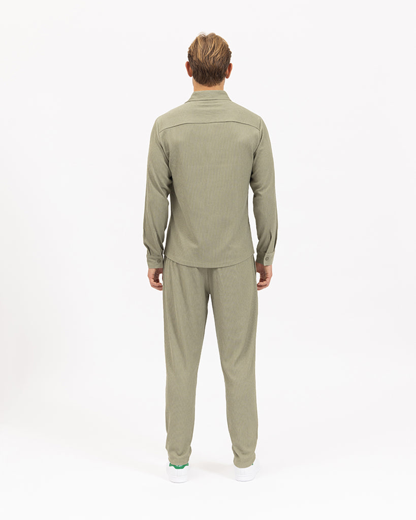 The Mirador Trouser in Sage. Constructed from light-weight textured style fabric in a relaxed and effortless silhouette, these trousers are the only wardrobe staple you need to accompany you throughout the seasons.