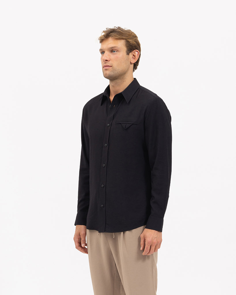 Updated for 2025, the Osaca Shirt in black is the perfect transitional day-to-night style, with a silhouette perfect for solo wear, paired with the matching pant or as a layering piece.