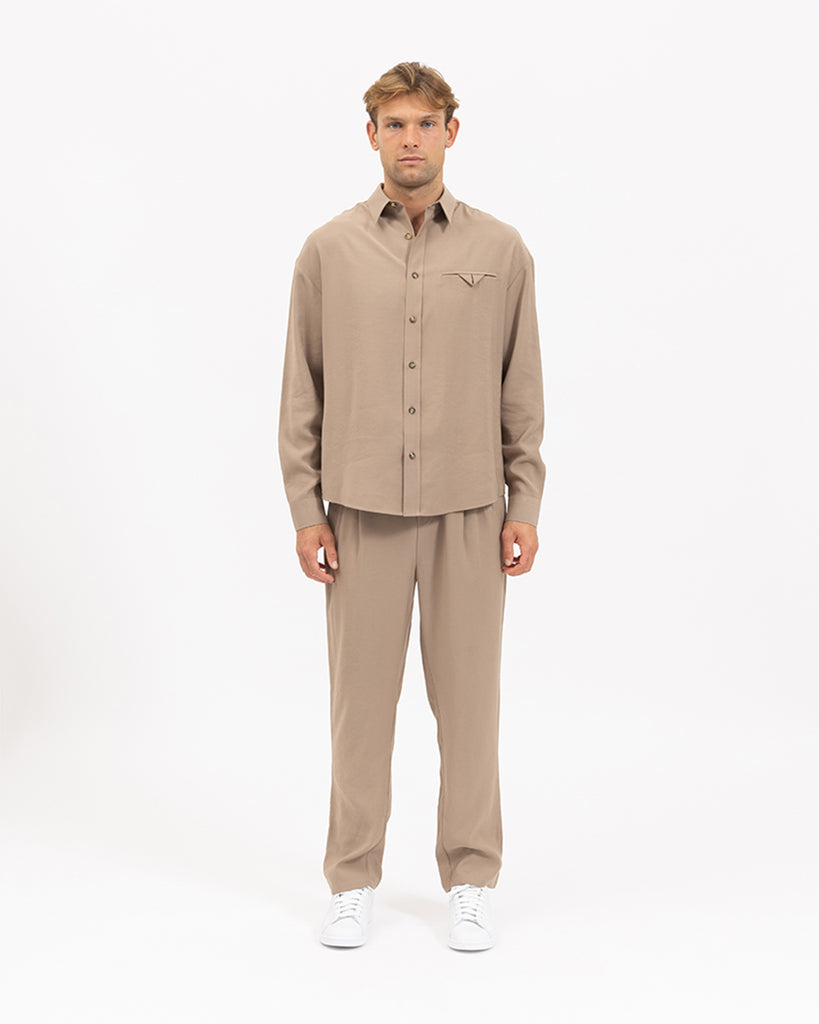 Updated for 2025, the Osaca Shirt in sage is the perfect transitional day-to-night style, with a silhouette perfect for solo wear, paired with the matching pant or as a layering piece.
