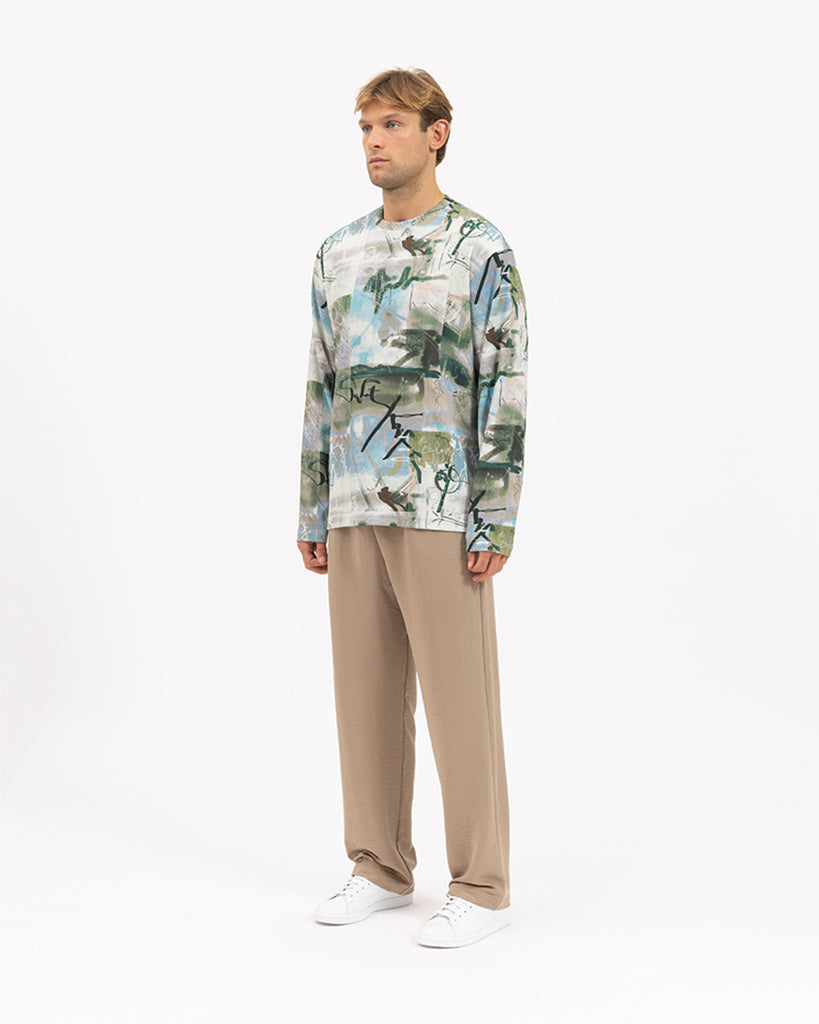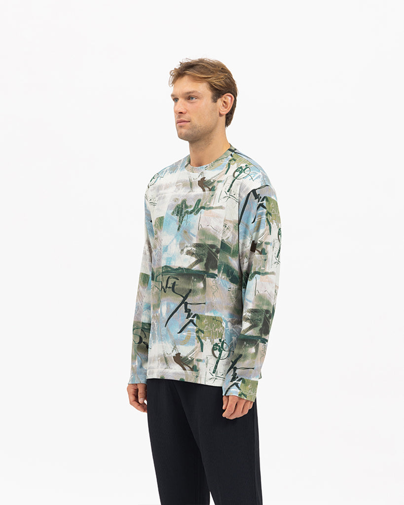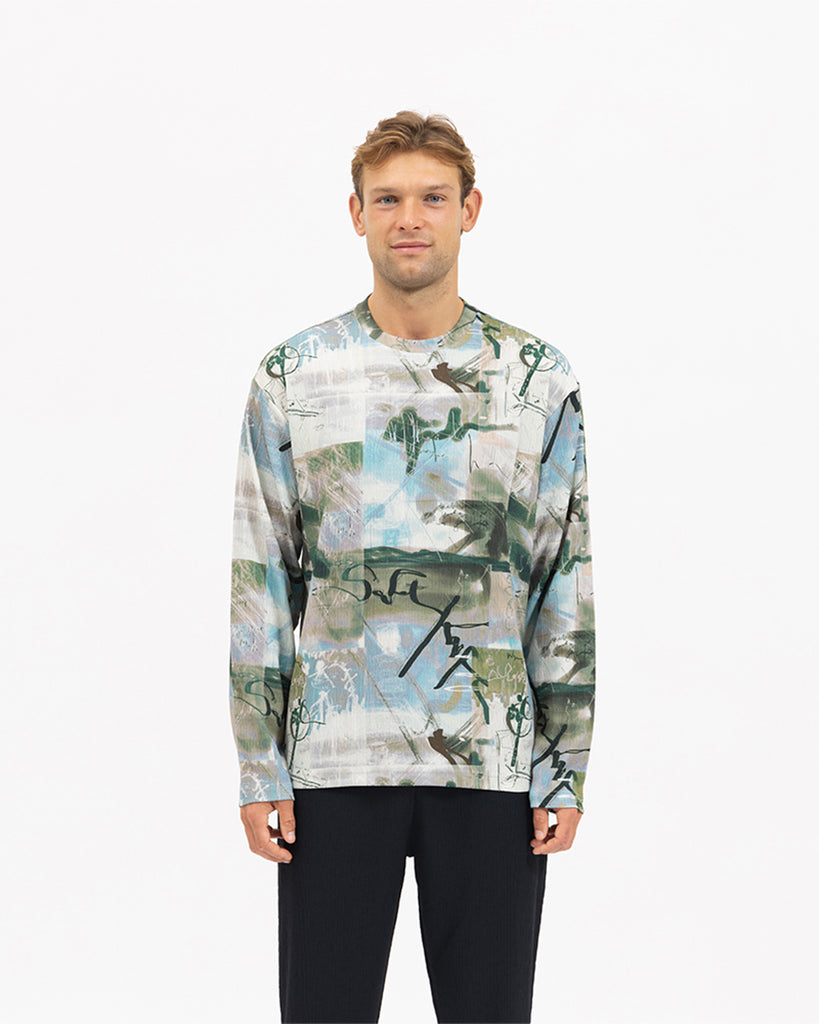 A key piece for AW24, the Vemella Print LS Crew in Blue base.